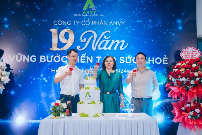 Trong không khí ấm cúng của buổi lễ, các thành viên đã cùng nhau nhìn lại chặng đường 19 năm xây dựng thương hiệu dược phẩm từ thảo dược của Anvy. Dược sĩ Tô Hồng Thái – Chủ tịch Sáng lập Anvy – đã chia sẻ về sự phát triển của công ty trong thời gian qua và định hướng phát triển toàn diện trong tương lai. Chủ tịch cũng gửi lời cảm ơn sâu sắc đến toàn thể CBCNV vì sự cống hiến và nỗ lực không ngừng để đưa Anvy đến thành công hiện tại.